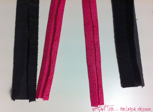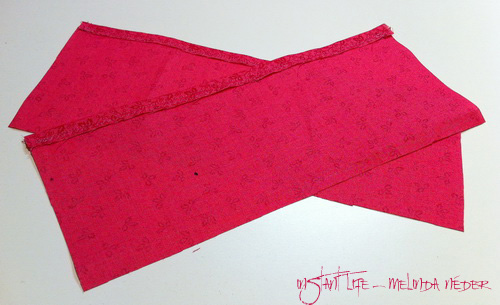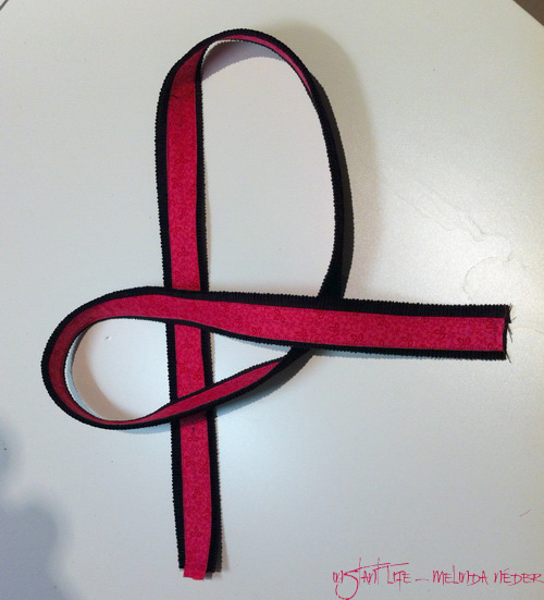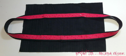 2. Egymásra illesztettem a két pántot a behajtott részekkel összefordítva és két oldalon végig varrtam.