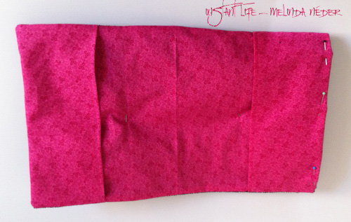 5. A zseb lapokat rátűztem a belső oldal két szélére. Mindkét anyagnak a színe van felfelé.